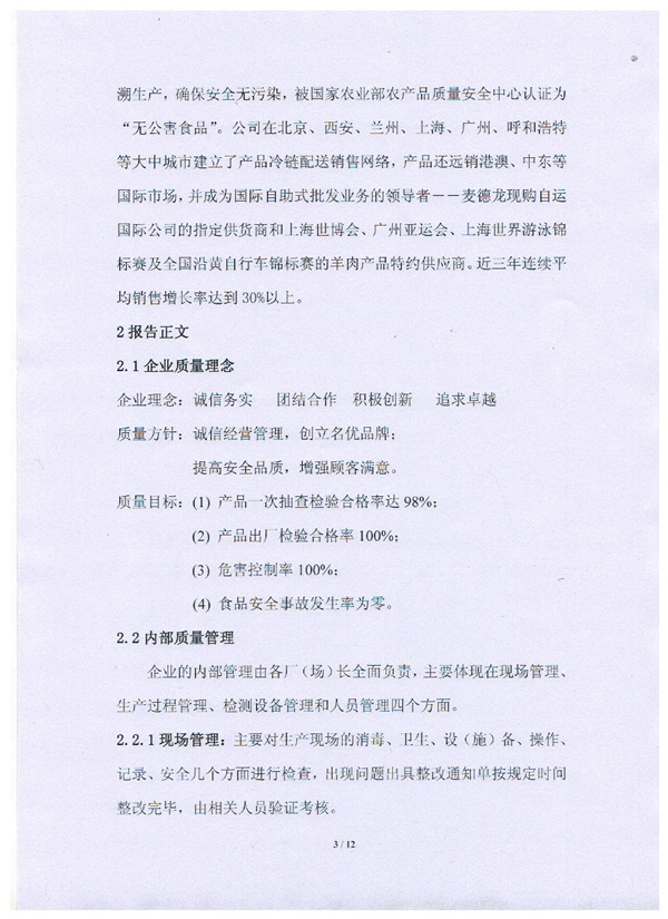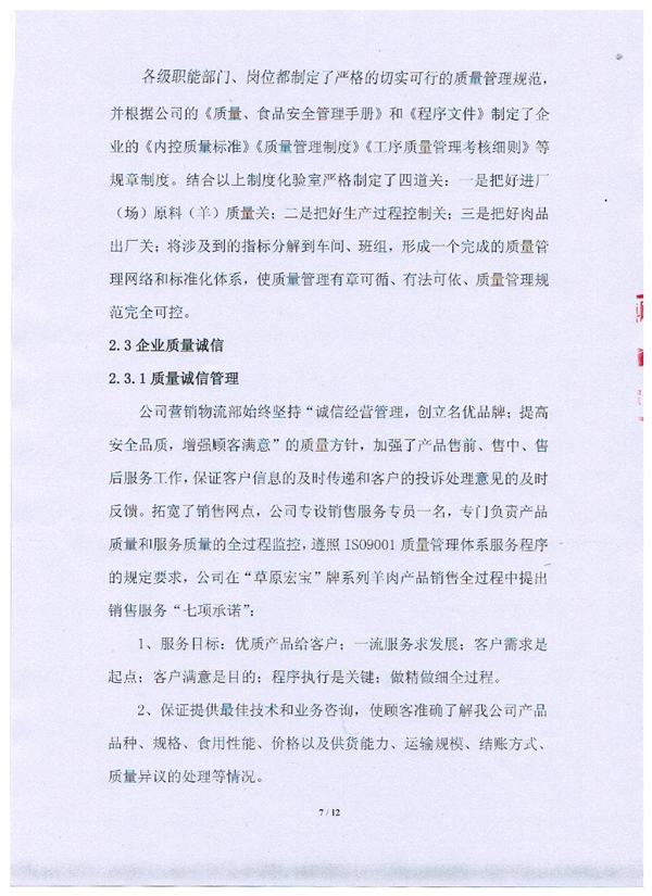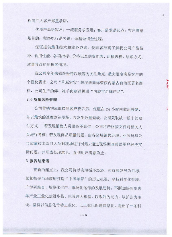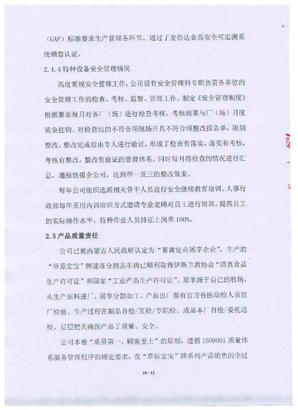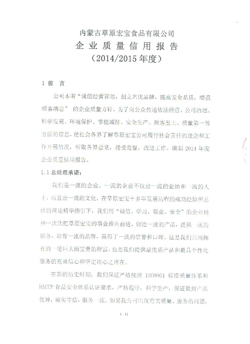 內(nèi)蒙古草原宏寶食品有限公司企業(yè)質(zhì)量信用報告